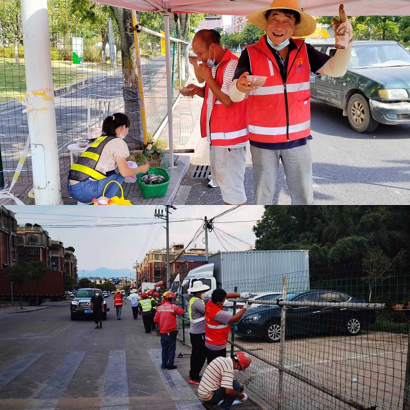 疫情无情,人间有爱。紧张的工作之余,一丝丝清凉,让奋战的春晗人倍感欣慰。正当大伙热火朝天地工作时,公司后勤部送去了精心熬制的绿豆汤,在短暂的休息之后,大家又投入到了工作当中。8月2日到8月7日,春晗人奋战在抗疫一线,完成围挡安装加固近5公里。