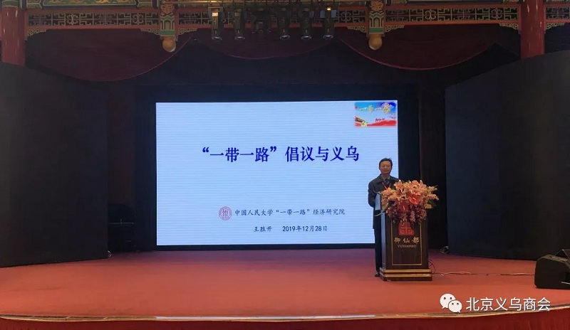 年会还特邀中国人民大学“一带一路”经济研究院王胜开教授作《“一带一路”与义乌》的主题演讲。他从“一带一路”倡议的基本含义及辐射的国家和地区、使命与意义、“义新欧”国际货运班列、民心相通等方面,深入系统地分析了“一带一路”的发展意义,简明扼要地阐述了我国经济发展的未来需要以及“一带一路”给义乌带来的发展机遇。