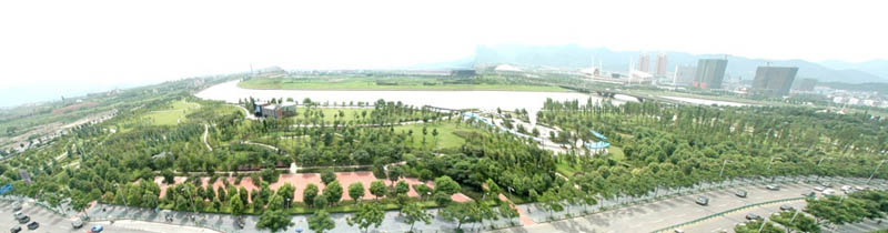 义乌江滨主题公园沿江自西向东包含13个各具特色的公园,建设总面积达166.53万平方米,总投资超4亿元。园内植物配置遵循生态、美观、经济适用的原则,注重自然植物生态群落,体现植物整体效果,基于生态设计原则和地方特色的体现。