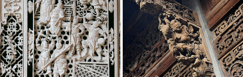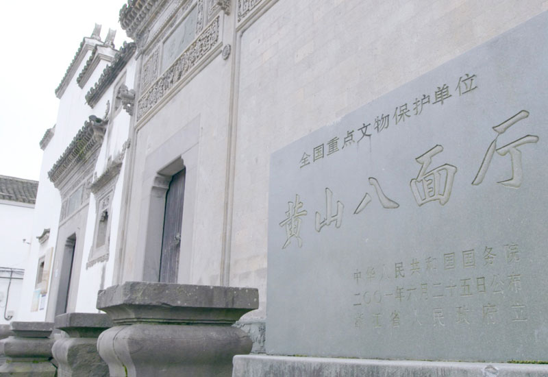 黄山八面厅为国家级重点文物保护单位,位于义乌市上溪镇黄山五村,坐西南朝东北,建筑呈矩形平面,占地约3000平方米,始建于清嘉庆元年(1796年)。整体布局严谨、规整、对称、尊卑有序,集精巧的建筑结构和精湛的雕刻艺术于一身,用材考究硕大,是一座古代雕刻艺术的博物馆,是我国古代建筑的杰作。