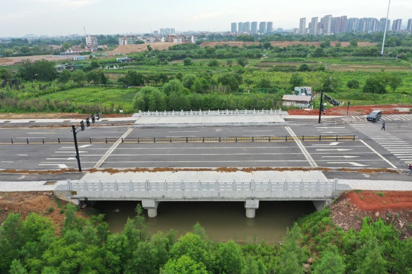 该项目合同造价5163万元,为城市次干道,设计速度40km/h;工程起于环城南路,起点桩号0+020,终点位于桩号1+060,主路全长1040m,宽36.0m;在号0+745.192处新建桥梁一座,桥长33m,宽38.35m;与南洲路临时衔接道路4处,共计316.55m等。