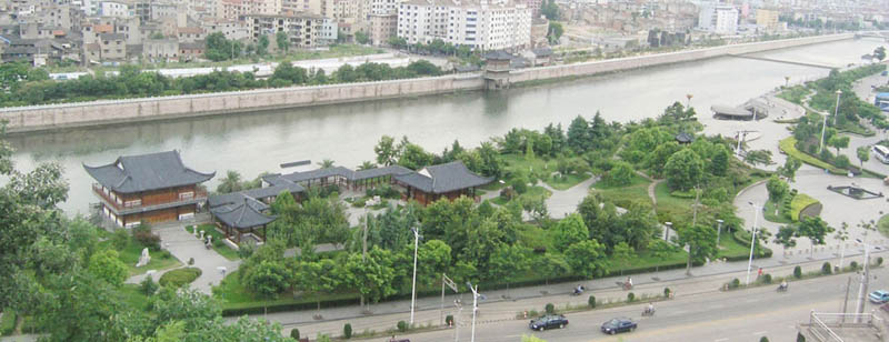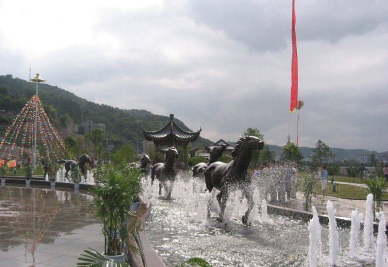 防洪堤全长1715米,犹如巨龙般飞腾于新昌江畔,是新昌城市安全的重要组成部分。新昌城防二期东至新昌大桥,南至新昌江,西至电力新村,北至新昌大道,占地4.03万平方米。2002年开工建设,建筑面积3.04万平方米,包括广场、小品、茶楼、防洪墙、园林绿化、铺装、给排水等。沿江建有市民休闲公园——“五马园”,置五马齐驱的群像,体现了“五马渡江,一马化龙”的历史典故。